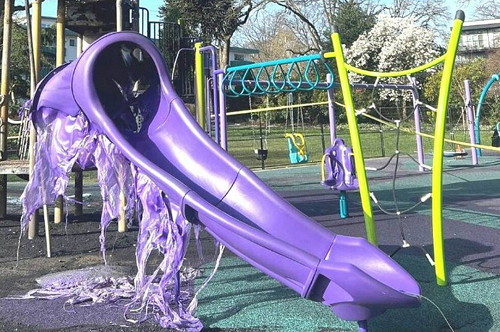 Around 1:15 am on Tuesday March 31 police were contacted by the Victoria Fire Department about the fire which was involving a play structure at Stadacona Park in the 1400-block of Pandora Avenue in the downtown area.