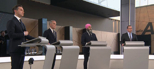 | Day 26 / Thurs April 17 | NDP | > NDP Leader Jagmeet Singh to visit a local market in Montreal, 10 am ET. > NDP Leader Jagmeet Singh will participate in the federal Leaders Debate in English, 7 pm ET (4 pm PT); was to address media at 9:25 pm ET but all post-debate scrums were cancelled by the organizing Commission; he instead held a media availability of his own in Montreal at 9:45 pm ET. | |